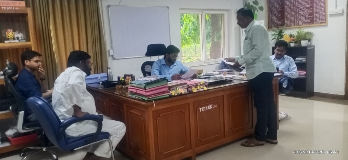 ఐ టి డి ఏ చైర్మన్ మేస్రం భూమన్న బుధవారం ఐ టి డి ఏ కార్యలయంలో ఐ టి డి ఏ పి ఓ వరుణ్ ని కలిసి, మండలంలోని ఆదివాసీ గిరిజన గ్రమాల్లో ఇటీవల బారి వర్షాలు పడటం తో దెబ్బతిన్న రోడ్డు లకు వెంటనే మరమత్తులు చేయించాలని కి చెప్పటం జరిగింది.