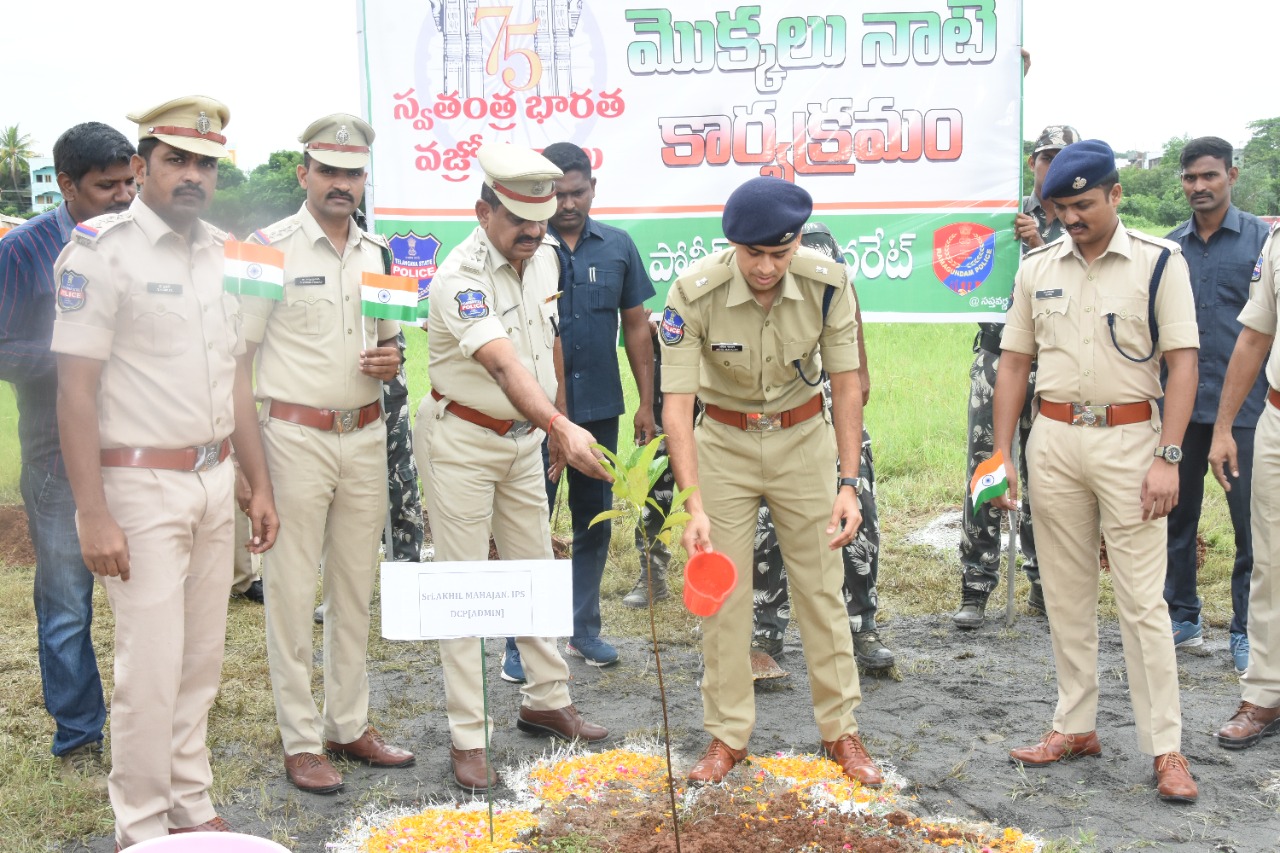 భారత వజ్రోత్సవ వేడుకలలో భాగంగా మొక్కలు నాటిన డీసీపీ అఖిల్ మహాజన్