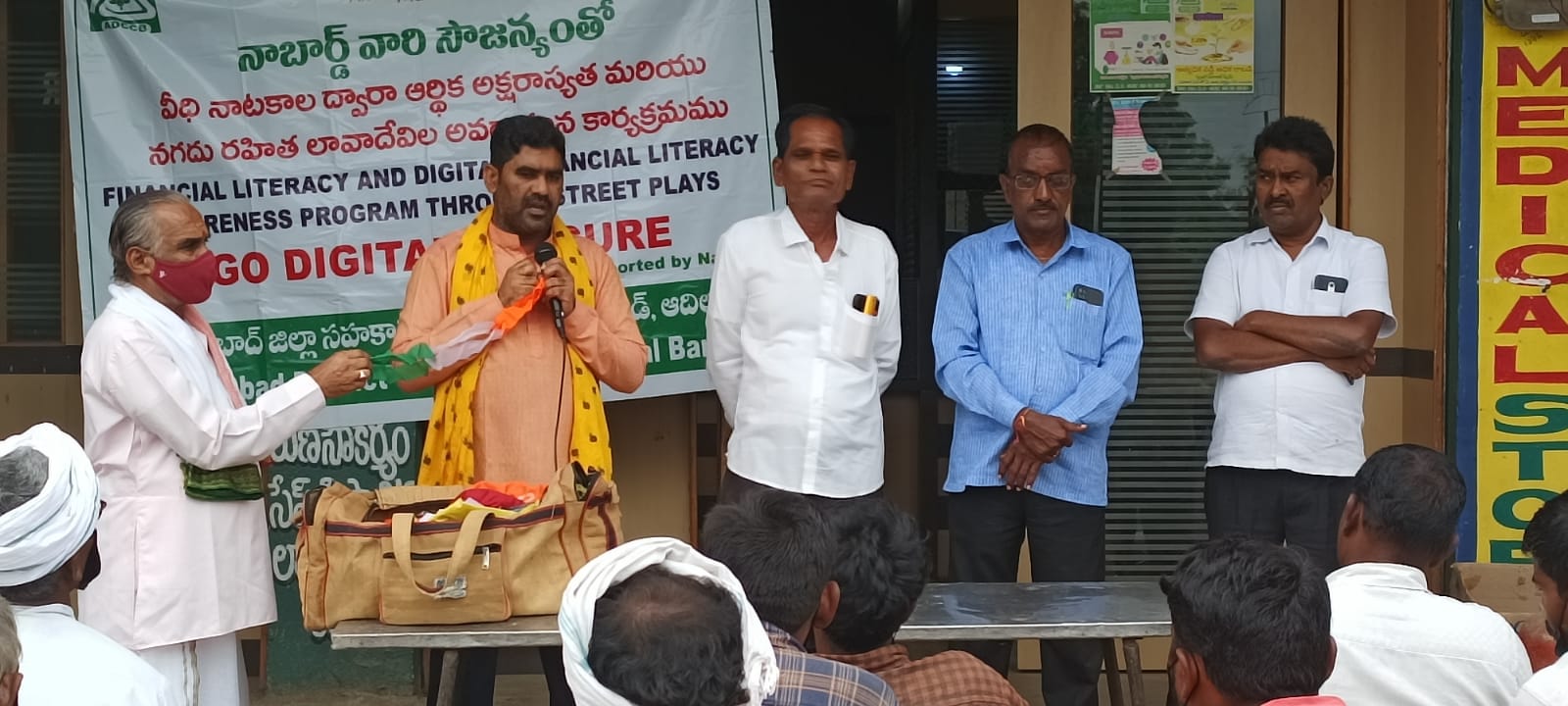 బోథ్ సాక్షర : మండలం లోని సోనాల సహకార కేంద్ర బ్యాంకు రైతులకు, వ్యాపారస్తులకు ఇస్తున్న రుణాలను తీసుకొని తిరిగి సకాలంలో చెల్లించి కొత్త రుణాలు తీసుకోవాలని సొనాల ఏడిసిసి బ్యాంకు మేనేజర్ జాప పొశెట్టి అన్నారు. భారత దేశానికి స్వాతంత్ర్యం వచ్చి 75 సంవత్సరాలు నిండిన సందర్భంగా ఆజాది కా అమృత్ మహోత్సవం లో భాగంగా నాబార్డు వారి సౌజన్యంతో కళాజాత బృందాల ద్వారా ఆదిలాబాద్ జిల్లా సహకార కేంద్ర బ్యాంకు సొనాల శాఖ ఆధ్వర్యంలో బ్యాంకు ఆవరణలో ఖాతా దారులకు అవగాహన సదస్సు నిర్వహించారు. పొదుపు ఖాతా, రుణాలు ,ఇన్సూరెన్స్ పథకాలు, డిజిటల్ లావాదేవీలు, మరియు సైబర్ నేరాల గురించి కళాకారులు ఆట, పాటలతో అవగాహన కల్పించారు.ఈ కార్యక్రమంలో బ్యాంకు మేనేజర్ జాప పొశెట్టి గారు, అసిస్టెంట్ మేనేజర్ పాపన్న గారు,ఎడిసిసి బ్యాంకు ఎఫ్ ఎల్సి అధికారి అశోక్ రెడ్డి , కళాకారులు రమేష్, రాజేశ్వర్, మరియు ఖాతా దారులు పాల్గొన్నారు.