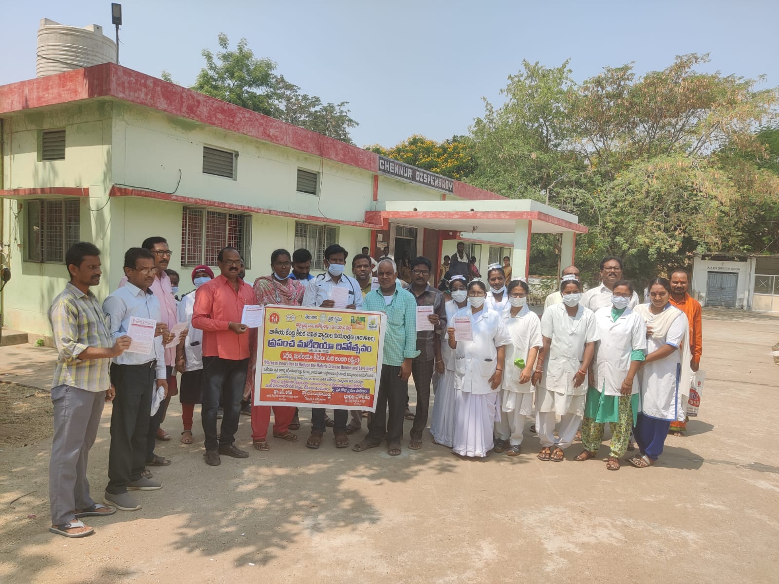 చెన్నూర్ సాక్షర : ప్రభుత్వ ఆసుపత్రి ఎల్లక్కపేట. (చెన్నూర్) ర్యాలీ నిర్వహించటం జరిగినది డా .సత్యనారాయణ ఈర్యాలిని ఉద్దేశించి మాట్లాడుతూ దోమలు. పుట్టకుండా చూడాలి మరియు కుట్టకుండా చూడాలి ఇంటి పరిసరాలు పరిశుభ్రముగా ఉంచుకోవాలి. నీరు నిల్వ కుండా చూడాలి మురికి గుంతలు పూడ్చి వేయాలి. ప్రతి శుక్రవారం డ్రైడే పాటించాలి మరియు మురుగు కాల్వల్లొ తిమోపాస్ స్ర్తే చేయించాలని దోమతెరలు వాడాలని తెలియ జేసారు ప్రపంచ ఆరోగ్య సంస్థ పిలుపు మేరకు 2030 ,నాటికి మలేరియా నిర్మూలనకు కలిసి కట్టుగా పనిచేద్దాం అని డా. పిలుపు నిచ్చారు ఈకార్యక్రమంలో డా. విజిత.పుట్ట సత్తయ్య మలేరియా సభ్ యూనిట్ అధికారి .బాస్కర్ రెడ్డి ,పరమేష్ రాజన్న రంజిత్ , చంద్రమౌళి ఏసుకర్ణ మరియు సిబ్బంది. పాల్గొన్నారు