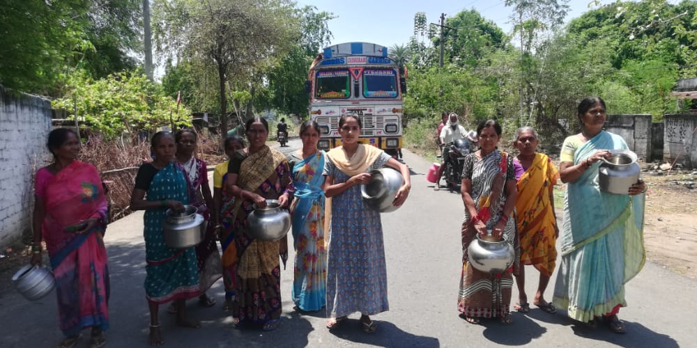 కాలి బిందలతో నిరసన తెలిపిన దుబ్బ గూడెం గ్రామస్థులు