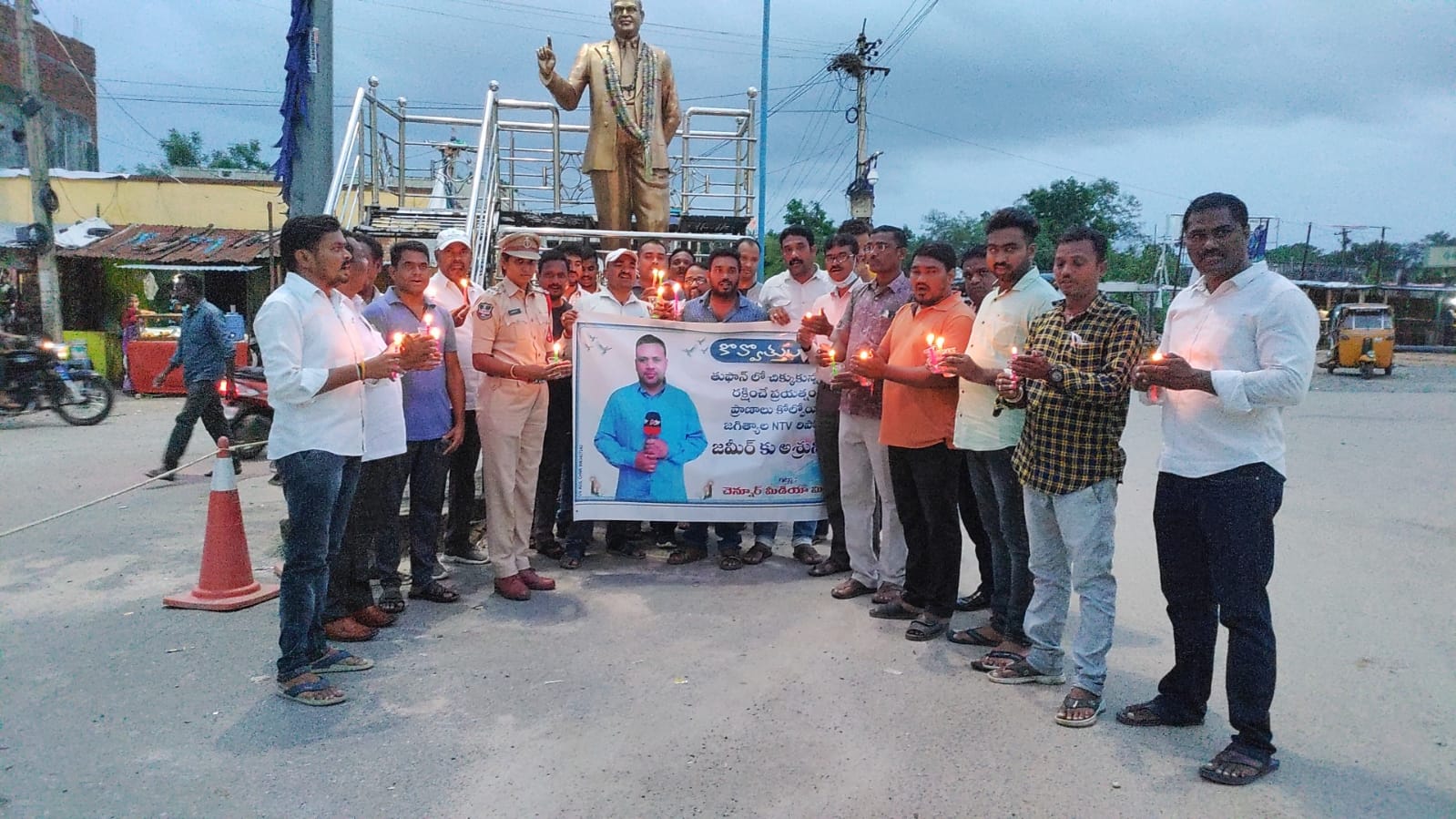 చెన్నూర్ సాక్షర : బారీ వర్షాల కారణంగా సంభవించిన వరదలలో గల్లంతై మృతి చెందిన జగిత్యాల ఎన్ టీవీ జర్నలిస్ట్ జమీర్ కుటుంబాన్ని ప్రభుత్వం ఆదుకోవాలని చెన్నూర్ నియోజకవర్గం ప్రింట్ అండ్ ఎలక్ట్రానిక్ మీడియా జర్నలిస్టులు డిమాండ్ చేశారు. జమీర్ మృతికి సంతాపంగా చెన్నూర్ పట్టణ కేంద్రంలో జర్నలిస్ట్ లు కోవొత్తుల ర్యాలీ నిర్వహించి, రెండు నిమిషాలు మౌనం పాటించారు. మృతి చెందిన జర్నలిస్ట్ జమీర్ కుటుంబానికి  సింగరేణి రేస్క్ టీం వారికి ఎవిదంగా నష్ట పరిహారం చెల్లించారో అదేవిధంగా  ఎక్స్ గ్రేషియా చెల్లించాలని, కుటుంబంలో ఒకరికి ప్రభుత్వ ఉద్యోగం ఇవ్వాలని డిమాండ్ చేశారు.