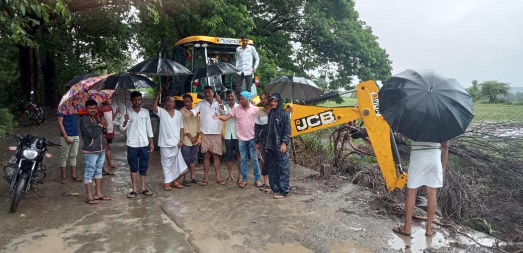 బోథ్ మండలంలోని సొనాల నుండి పార్డి కే, వజ్జర్,చింతల్ బోరి, గ్రామాలకు వెళ్లే పార్డి బి మలుపు వద్ద ఉన్న చిన్న వాగు భారీ వర్షాలు పడటంతో వంతెన వద్ద మట్టి నిండి వంతెన పై నుండి వరద నీరు పారాడంతో ప్రజలకు ఇబ్బంది కలగకుండా వెంటనె జేసిబి సాహాయంతో చింతల్ బోరి గ్రామానికి చెందిన సత్యనారాయణ మరియు దేవుల్ నాయక్ తండా సర్పంచ్ సక్కరాం మరియు గ్రామస్థులు కలిసి తొలగించారు.