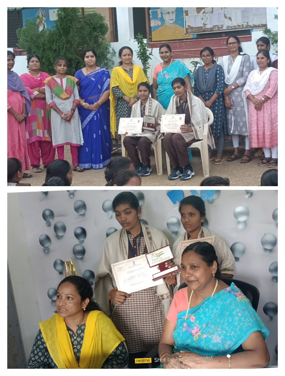 ఇచ్చోడమండల పరిధిలోని సాంఘిక సంక్షేమ డిగ్రీ బాలికల కళాశాలలో ప్రిన్సిపాల్ ,వైస్ ప్రిన్సిపాల్ ఆధ్వర్యంలో వ్యాస రచన పోటీలలో పాల్గొని గెలుపొందిన కారణంగా గవర్నర్ తమిళ సై చేతుల మీదుగా అవార్డు తీసుకున్న సందర్భంగా మమత,తిరుపతమ్మ లకు ప్రిన్సిపల్,కళాశాల సిబ్బంది సన్మాన కార్యక్రమం చేపట్టారు. వ్యాసరచన పోటీల్లో గెలుపొందిన విద్యార్థినిలు మమత,తిరుపతమ్మ లు మాట్లాడుతు వారి యొక్క అద్భుతమైన అనుభూతినీ తమ తోటి విద్యార్థినులతో పంచుకోవడం జరిగింది. తమ తోటి విద్యార్థినులు ,కళాశాల సిబ్బంది ప్రోత్సాహంతోనే ఈ విజయం సాధ్యమైందని చెప్పుకొచ్చారు.అదేవిధంగా ప్రిన్సిపాల్ ప్రభుజ్యోతి మాట్లాడుతు రాష్ట్ర స్థాయిలో తమ కళాశాల పేరు మారు మ్రోగించిన మమత, తిరుపతమ్మకలు శుభాకాంక్షలు తెలిపారు. ఇట్టి కార్యక్రమంలో డిగ్రీ కళాశాల ప్రిన్సిపాల్ G.E ప్రభుజ్యోతి, వైస్ ప్రిన్సిపాల్ సభిత, టీచింగ్ నాన్ టీచింగ్ సిబ్బంది,విద్యార్థినులు తదితరులు పాల్గొన్నారు.