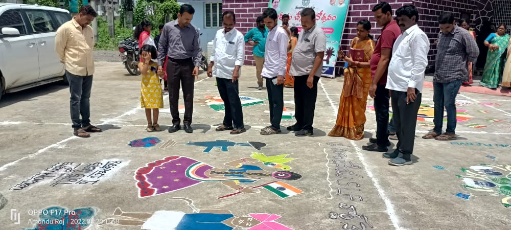 స్వతంత్ర భారత వజ్రోత్సవాల్లో భాగంగా తెలంగాణ రాష్ట్ర ప్రభుత్వం ముఖ్యమంత్రి కేసీఆర్ మరియు రాష్ట్ర మంత్రి వర్యులు శ్రీ అల్లోల ఇంద్రకరణ్ రెడ్డి పిలుపు మేరకు,స్వతంత్ర భారత వజ్రోత్సవాలను పురస్కరించుకుని జిల్లా కేంద్రంలోని అంబేద్కర్ భవనం లో శనివారం ఉదయం మహిళ సంఘాల మరియు పట్టణ పేదరిక నిర్మూలన సంస్థ -మెప్మా ఆధ్వర్యంలో ముగ్గుల పోటీలు నిర్వహించారు.