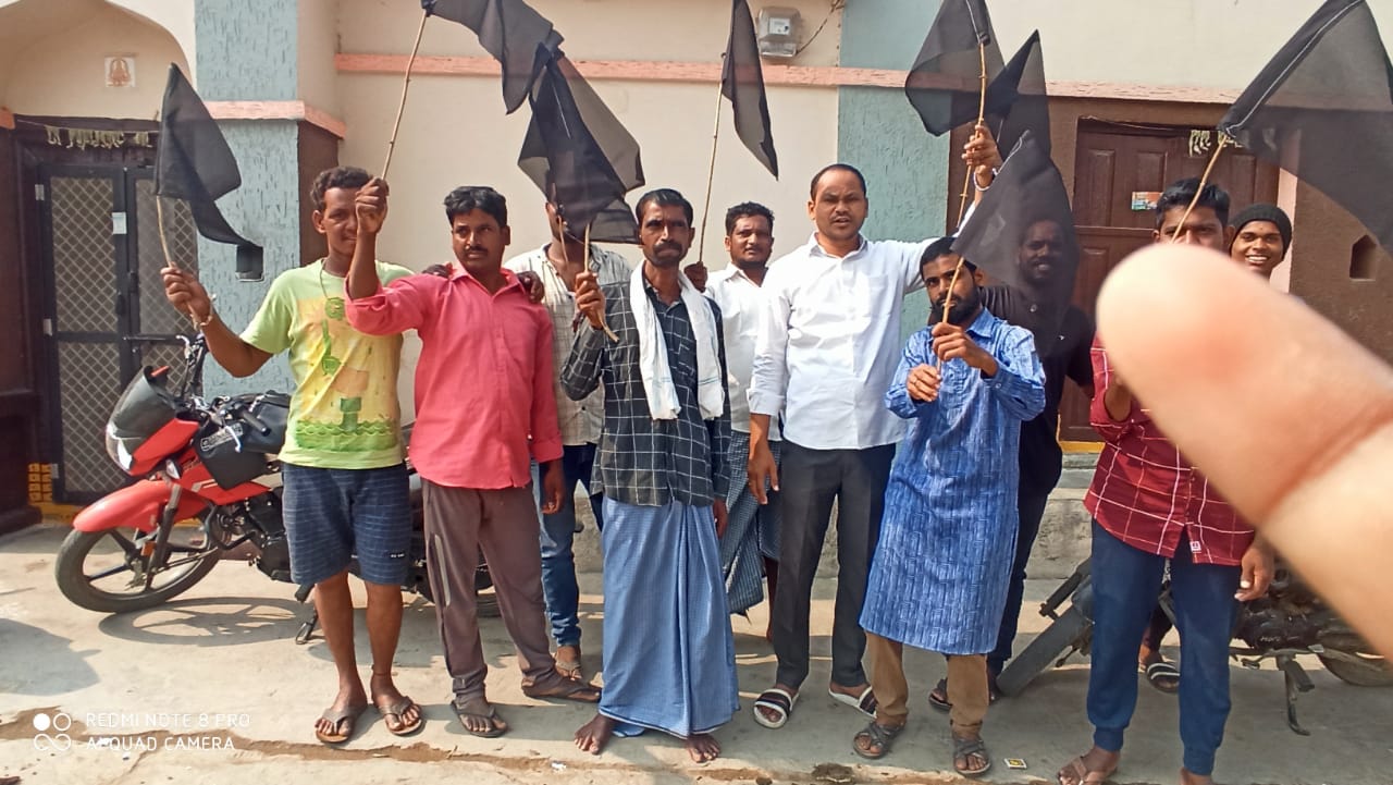 నల్లజెండాలతో నిరసన తెలిపిన తెరాస కార్యకర్తలు.