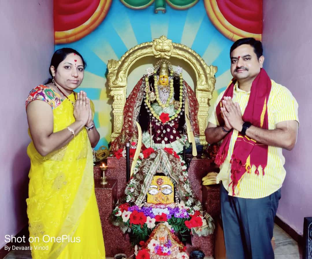 కొమరం భీం జిల్లా రెబ్బెన మండలం ఇందిరానగర్ గ్రామంలో వెలసిన శ్రీ కనక దుర్గా దేవి స్వయంభూ శ్రీ మహంకాళి ఆలయంలో శ్రావణమాసం పురస్కరించుకొని రెబ్బన సర్కిల్ ఇన్స్పెక్టర్ అల్లం నరేందర్ నాగలక్ష్మి దంపతుల పెళ్లిరోజు సందర్భంగా అమ్మవారిని దర్శించుకుని పట్టు వస్త్రాలు వొడి బియ్యం నైవేద్యాలు సమర్పించుకొని ప్రత్యెక పూజలు నిర్వహించరు, ఆలయానికి విచ్చేసిన సర్కిల్ ఇన్స్పెక్టర్ అల్లం నరేందర్ దంపతులను ఆలయ ప్రధాన అర్చకులు దేవార వినోద్ ఆలయ కమిటీ అధ్యక్షుడు మోడెమ్ తిరుపతి గౌడ్ గారు శాలువాతో సత్కరించి అమ్మవారి చిత్రపటాన్ని అందించారు.
