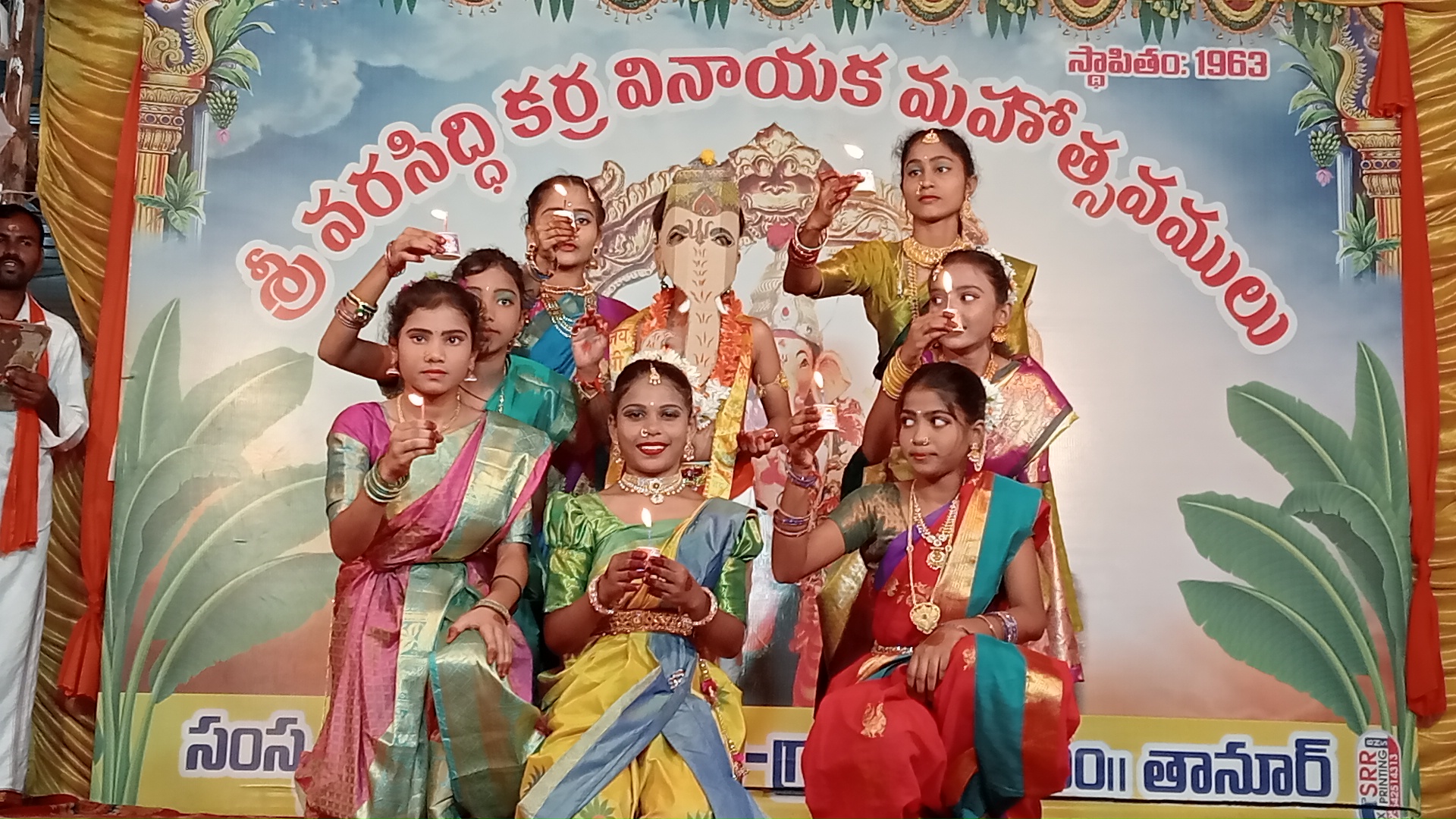 బాసర సాక్షర : నిర్మల్ జిల్లా లోని తానూరు మండలం లోగల భోసి కర్ర గణపతి దర్శనానికి భక్తులు పోటెత్తారు..వినాయకుని దర్శనానికి సుమారు రెండు గంటల సమయం పట్టింది..పది రోజుల పాటు కొలిచే కర్ర వినాయకుని నవరాత్రోత్సవాలు భోసి గ్రామంలో ఘనంగా కొనసాగుతున్నాయి..భక్తులకు ఇబ్బందులు కలగకుండా ఆలయ కమిటీ సభ్యులు అన్ని ఏర్పాట్లు చేస్తున్నారు ...ప్రతిరోజు సాయంత్రం వేళలో భక్తుల ఆహ్లాదం కోసం సాంస్కృతిక కార్యక్రమాలు ఏర్పాటు చేస్తున్నారు.. ఉత్సవాల్లో భాగంగా ఆలయం వద్ద సోమవారం సాయంత్రం బాసర మండల కేంద్రానికి చెందిన నాగభూషణ విద్యాలయ విద్యార్థులు సాంస్కృతిక నృత్య ప్రదర్శన లు నిర్వహించారు .. యోగ, భక్తి పాటలు, తదితర,నృత్యాలను విద్యార్థులు ప్రదర్శించారు... అనంతరం ఆలయ కమిటీ తరపున పాఠశాల ప్రిన్సిపల్ బాబురావ్ తో పాటు పాఠశాల సిబ్బంది ని షాలువాతో సన్మానించి కర్ర గణపతి చిత్ర పఠాన్ని, ప్రసాదాన్ని అందించారు.. చిన్నారుల నృత్య ప్రదర్శన లు భక్తులను ఆకట్టుకున్నాయి..పాఠశాల ప్రిన్సిపల్ జారికొట్ బాబురావ్ తో పాటు ప్రధానోపాధ్యాయురాలు సులోచన, వ్యాసపురి కన్యక పరమేశ్వరి ట్రస్ట్ ఇంచార్జి గణేష్ గాదేవార్, ఉపాధ్యాయ సిబ్బంది సందీప్, శరత్, మమ్మాయి సంగీత, సంగవార్ విమలత, వింధ్య, ఉన్నారు