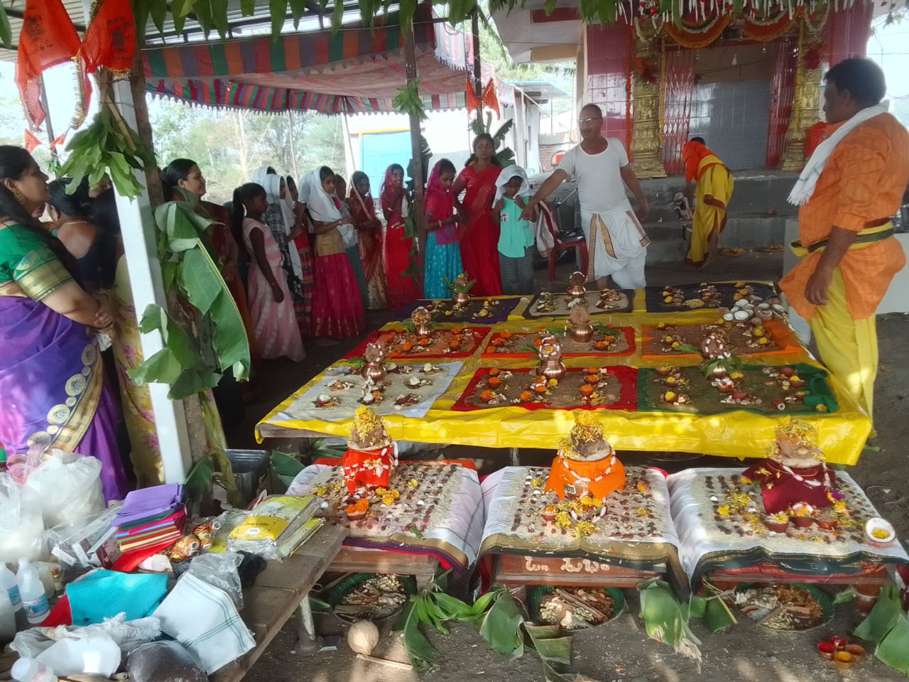 బజార్ హత్నూర్, సాక్షర న్యూస్ :--మండల కేంద్రలోని శివాలయంలో వేదమంత్రాల ఉచ్చరణచేయగాఎంతోవైభవోపేతంగాఆడపడచులు సందడి చేయగా శుక్రవారం రోజు మహాదేవుని మందిరం (శివాలయం )లో కలశం, శిఖరము,నంది,హనుమాన్,లింగం, బలిపీఠం, ధ్వజం తదితరవిగ్రహాలకు భక్తి శ్రద్దలతో బ్రాహ్మణ పూజారి ప్రవీణ్ మహారాజ్ పూజలు,దంపతులకు యజ్ఞం, హోమం జరిపించారు.800వందల ఆడపడుచులు వారందరికి కలశాలు, ప్రసాదం పంపిణీ చేశారు. ప్రతి పుట్టింటి బిడ్డా శివాలయం శిఖరము ప్రతిష్టించుటకు కత్నాలు ముందుగానే శివాలయoకు అందజేశారు.శివాలయం కమిటీ వారు ఈ విగ్రహాలు ప్రతిష్టాపనకోసంవచ్చిన భక్తులందరి అన్న దానం ఏర్పాటు చేశారు.ఈ కార్యక్రమంలో వివిధ గ్రామాల నుంచి వచ్చిన శివభక్తులు, గ్రామస్తులు, ఆడపడుచులు, తదితరులు పాల్గొన్నారు.