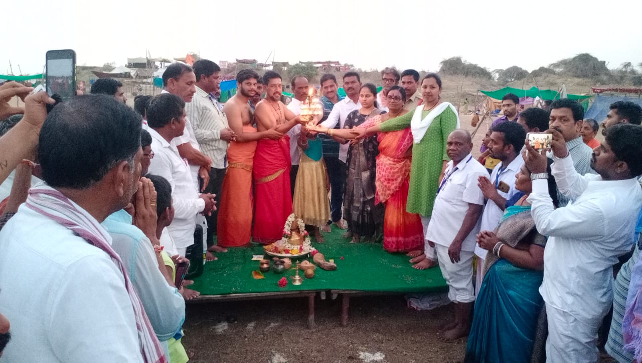 చెన్నూరు సాక్షర: కోటపల్లి మండలం అర్జున్ గుట్ట వద్ద మంగళవారం సాయంత్రం అర్జున గుట్ట ప్రాణహిత పుష్కర ఘాట్ లో ఎడవ రోజు ప్రాణహిత నది హారతి కార్యక్రమములో పుష్కరాల చీఫ్ ఫెస్టివల్ ఆఫీసర్ శ్రీ టీ.శ్రీకాంత్ రావు మరియు సహాయ కమీషనర్ అదిలాబాద్ ఆదేశాల మేరకు దేవాదాయ ధర్మాదాయ శాఖ శ్రీ బుగులు వేంకటేశ్వర స్వామి దేవస్థానం చిలూపుర్  జనగామ జిల్లా తరపున సదురు కార్యనిర్వహణాధికారి లక్ష్మి ప్రసన్న మరియు అర్చకులు దేవస్థాన సిబ్బంది నది హారతి కొరకు వాయనం ఇవ్వడానికి భాజ భజంత్రీలతో వచ్చి భక్తుల సమక్షంలో సమర్పించనైనది ఈ కార్యక్రమంలో ఘాట్ ఇంఛార్జి వి.అనూష లైజనింగ్ ఆఫీసర్ ఆర్.రవికిషన్ కార్యనిర్వహణాధికారులు మరియు గ్రామ సర్పంచ్ ప్రజాప్రతినిధులు వివిధ శాఖ అధికారులు మరియు డిప్యూటేషన్ సిబ్బంది భక్తులు పాల్గొన్నారు