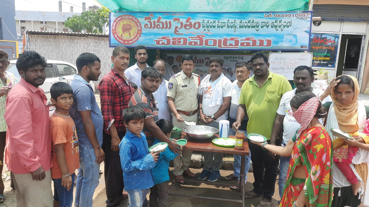 మందమర్రి పట్టణంలో మేముసైతం స్వచ్చంద సేవా సంస్థ చలివేంద్రములో మందమర్రి ఎస్ ఐ భూమేష్ చేతుల మీదుగా పెరుగన్నం పంపిణీ.